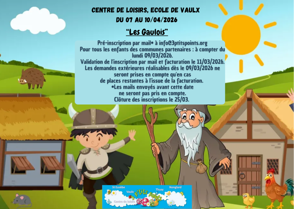 Vous êtes ici : Accueil > Centre de loisirs - Printemps 2026 Centre de loisirs - Printemps 2026 Publié : 5 mars 2026
